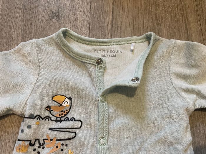 Pyjama velours, taille 1 mois, en très bon état car porté seulement quelques fois, acheté neuf.