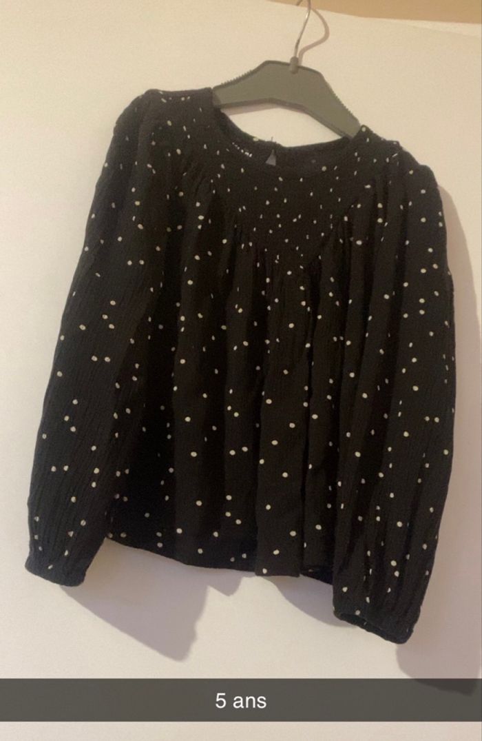 Blouse fille taille 5 ans Couleur noir à pois blanc Parfait état