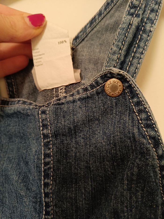 État : Très bon état. Le denim n'est pas délavé et les volants blancs sont impeccables.