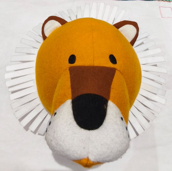Créez une ambiance savane avec ce joli trophée lion en laine ! Accroché au mur, le roi des animaux veille sur votre enfant et décore avec beaucoup de style la chambre des petits aventuriers !