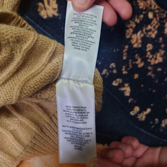 Pull torsadé col rond Polo Ralph Lauren camel logo brodé noir taille M - photo numéro 4