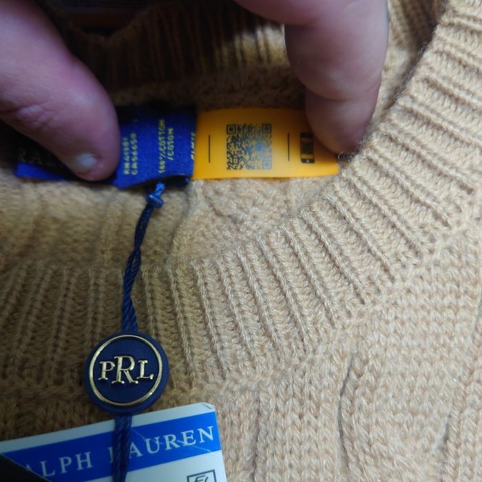 Pull torsadé col rond Polo Ralph Lauren camel logo brodé noir taille M - photo numéro 7