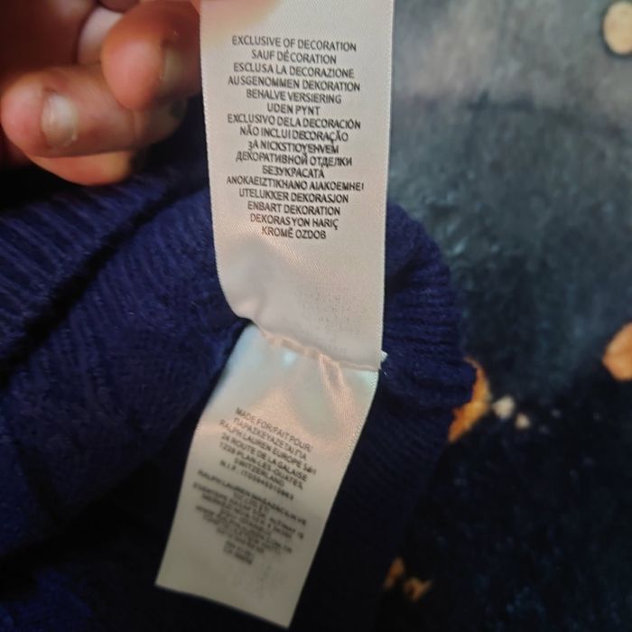 Pull torsadé col rond Polo Ralph Lauren bleu logo brodé rouge taille L - photo numéro 4