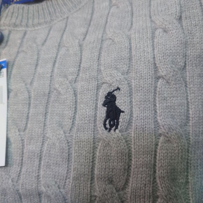 Pull torsadé col rond Polo Ralph Lauren gris logo brodé noir taille XL - photo numéro 5