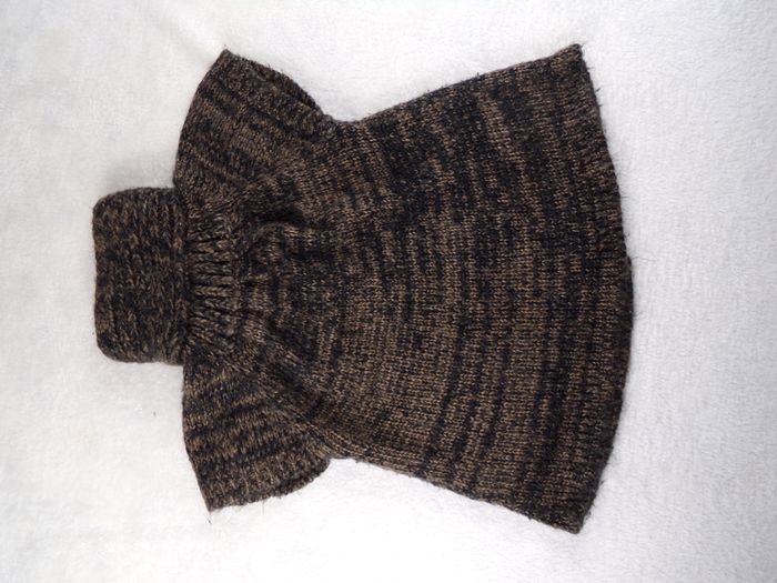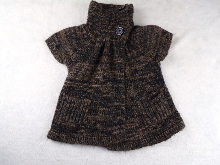 Gilet en maille épaisse, chiné noir/brun, manches courtes, fermeture à pressions au col avec boutons décoratifs, 2 petites poches Taille 5 ans - porté, ni trous, ni tâches #darkatalia5ans B5