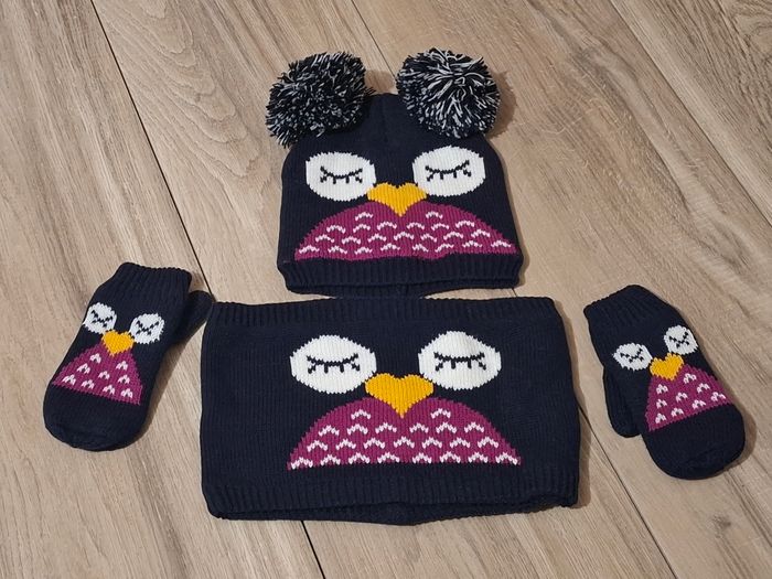 Ensemble bonnet, gants et écharpe pour fille hibou