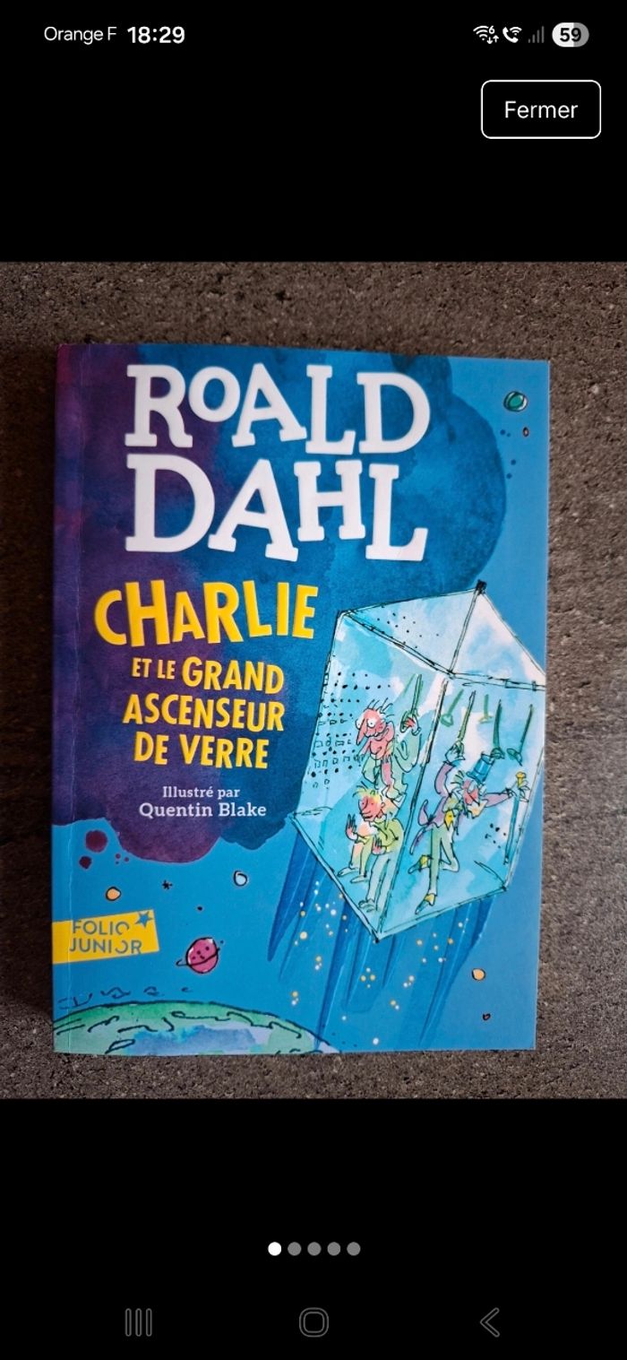 Livre Charlie et le grand ascenseur de verre. Livres plein d'humour sur le thème Charlie et la chocolaterie...facile à lire a partir de 10 ans gallimard