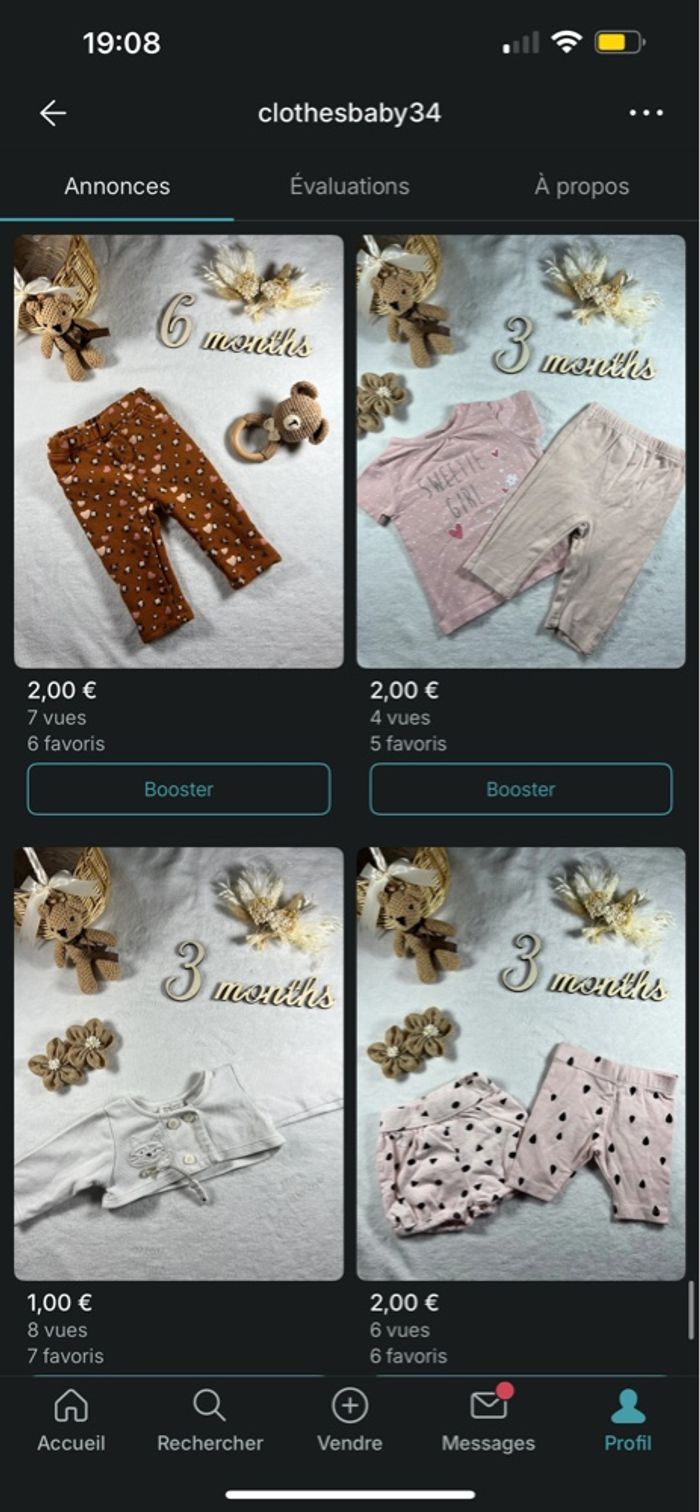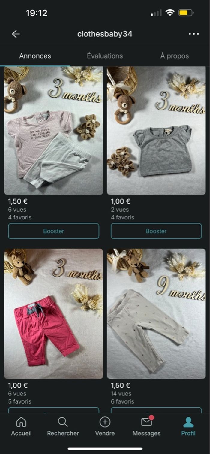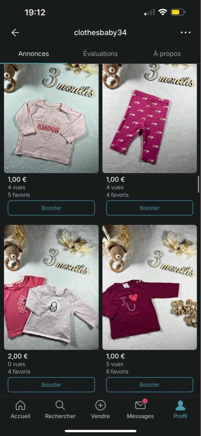 Vend gros lot (vêtements bébés de 0 à 18 mois)
