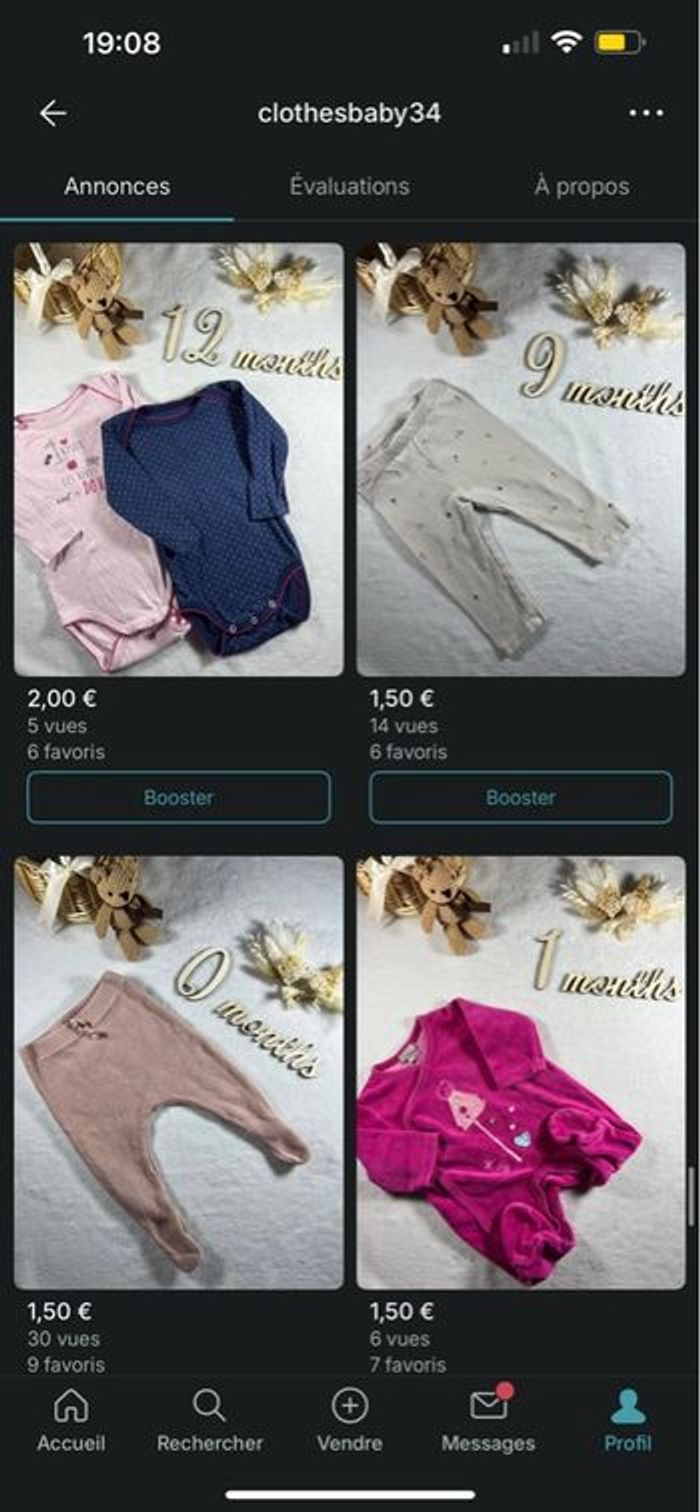 Vend gros lot de vêtements bébés (du 0 au 18 mois), en très bon état général.