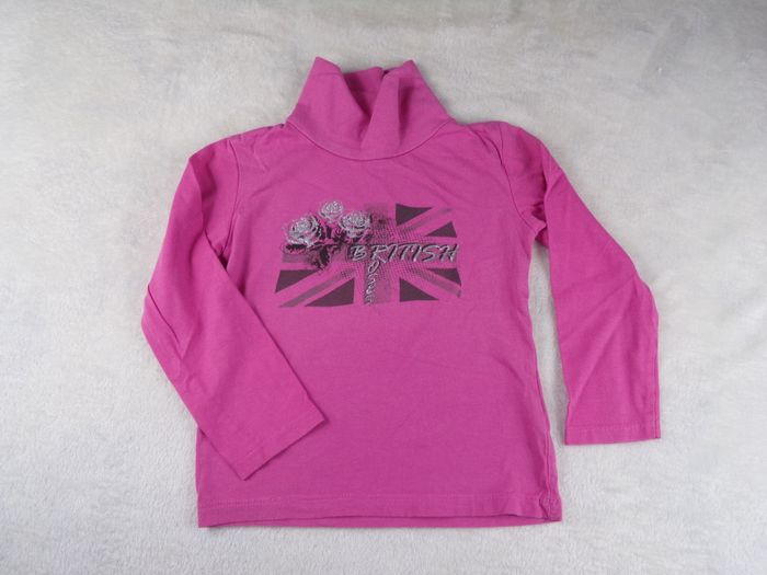 T-shirt à manches longues rose fuchsia, avec un imprimé "Britain" devant, col montant Taille 5 ans - porté, usure d'usage, ni trous, ni tâches #darkatalia5ans B5
