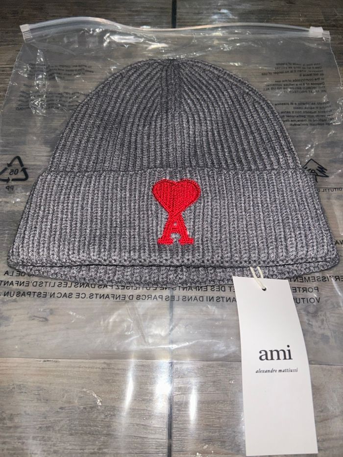 Bonnet AMI Paris original, coloris Gris, avec le célèbre logo Ami de Cœur rouge brodé sur le devant. Modèle intemporel et unisexe, facile à porter au quotidien.