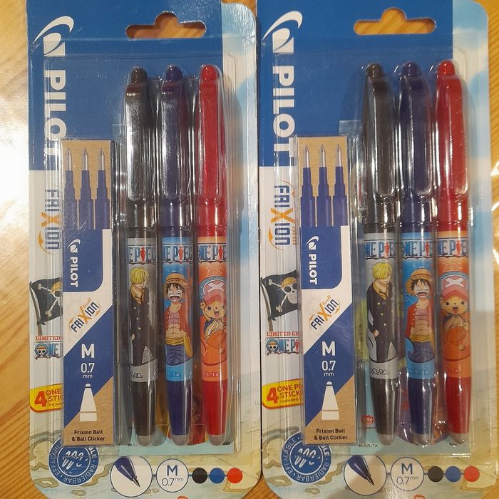 2 paquets de 3 stylos frixion encre effaçable Couleurs assorties En 🎁 8 stickers one Piece Neufs