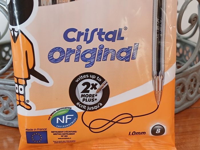 Articles neufs. Paquet scellé de 8 stylos-billes marque Cristal original. Pointe 1 mm; coloris encre noire // voir photos pour détails