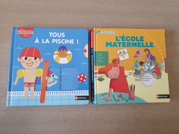 A vendre lot de 2 livres Kididoc, livre avec onglets à soulever ou roue à tourner. - Kididoc Tous à la piscine, en très bon état, juste un petit accroc en haut de la couverture (voir photo) - Kididoc l'école maternelle, en très bon état, 1 onglet un peu plié (voir photo). Vendu 8€ l'ensemble N'hésitez pas à jeter un coup d'œil sur mon dressing (d'autres livres en vente). Une réduction dès articles achetés ! #elodieeden45_livres