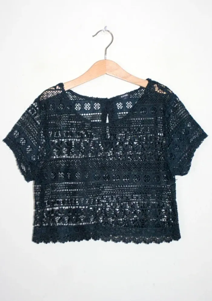 Haut style crochet bleu marine de chez Kiabi, taille 12 ans, 100g