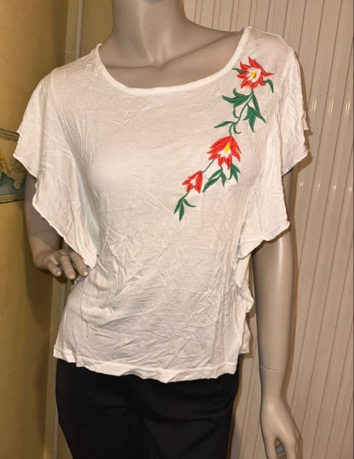 T shirt papillon, taille M comme neuf, marque tati. 37 cm de large, longueur 53 cm #fillekay57070 #femmekay57070 #tati #tailleM #taille38 #etefemme