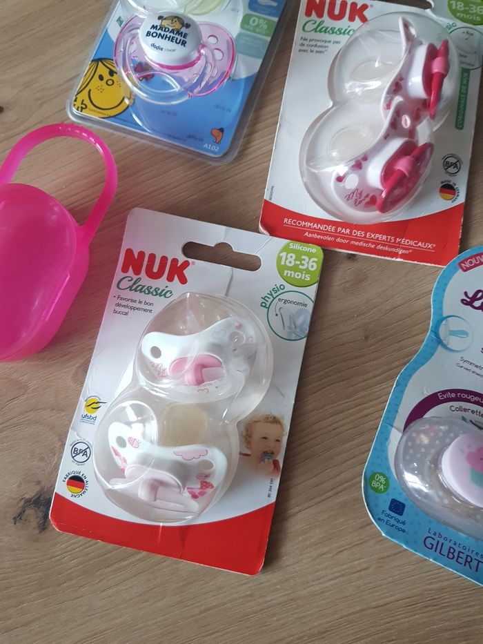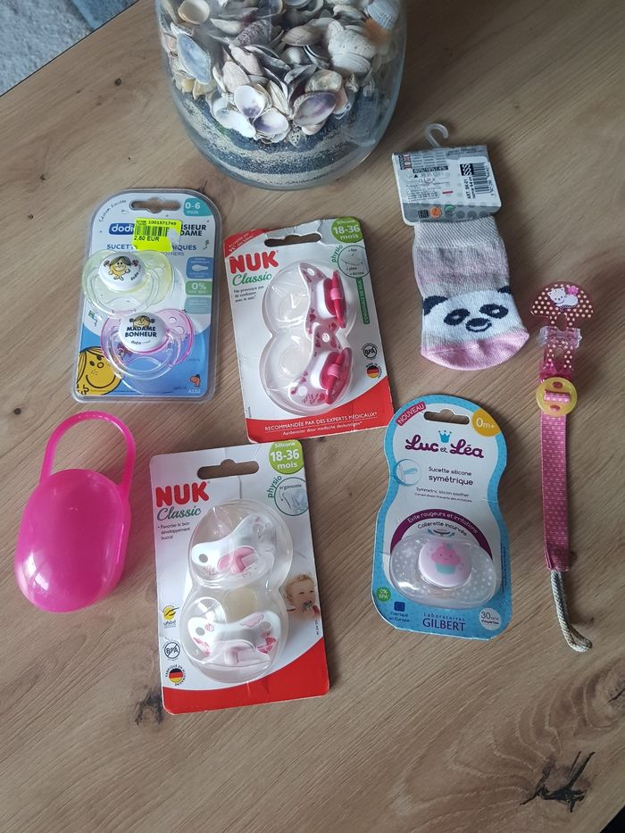 Lot tétines fille + boite