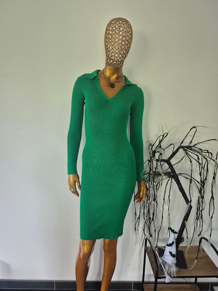 Robe Col V Verte Femme Taille S/M