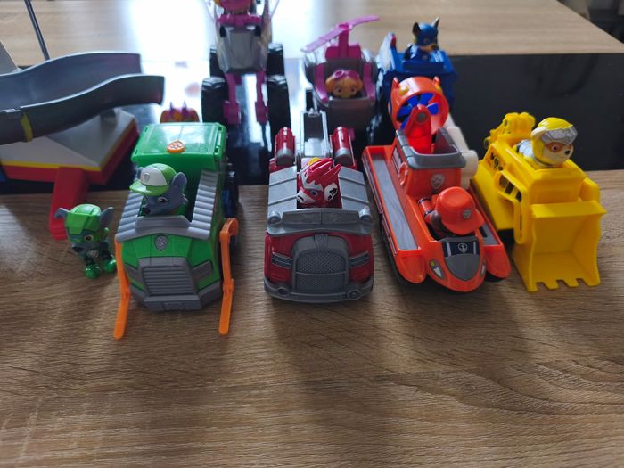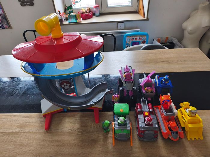 * Ce lot Pat patrouille se compose de la tour patrouille ainsi que de 7 véhicules et de 11 personnages . 2 personnages sont manquants sur la photo. Il est encore en bon état malgré quelques défauts de peinture écaillée sur quelques personnages et la tour et les piles sont à changer dans le boîtier mais fonctionne encore . Possibilité à l'unité et prix négociable.