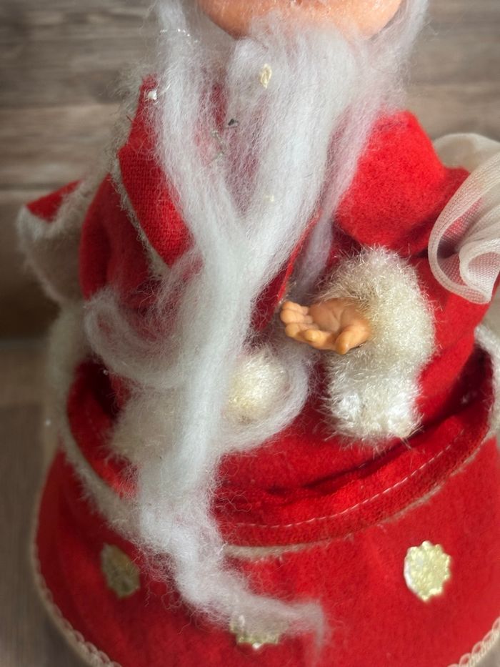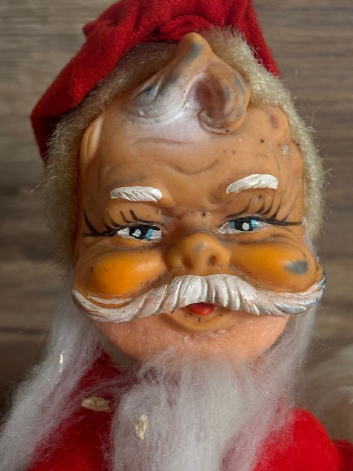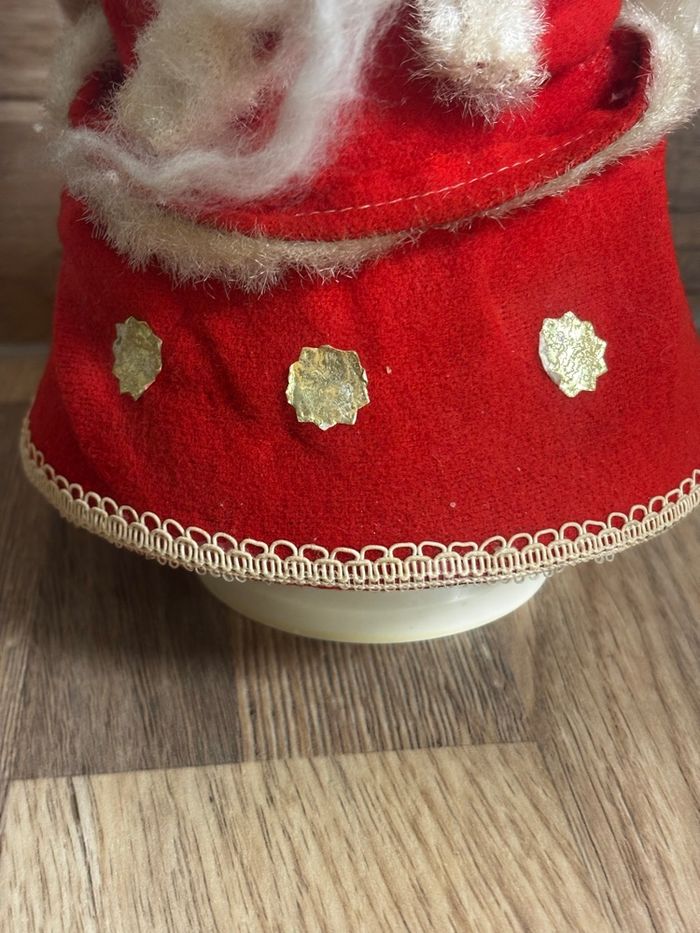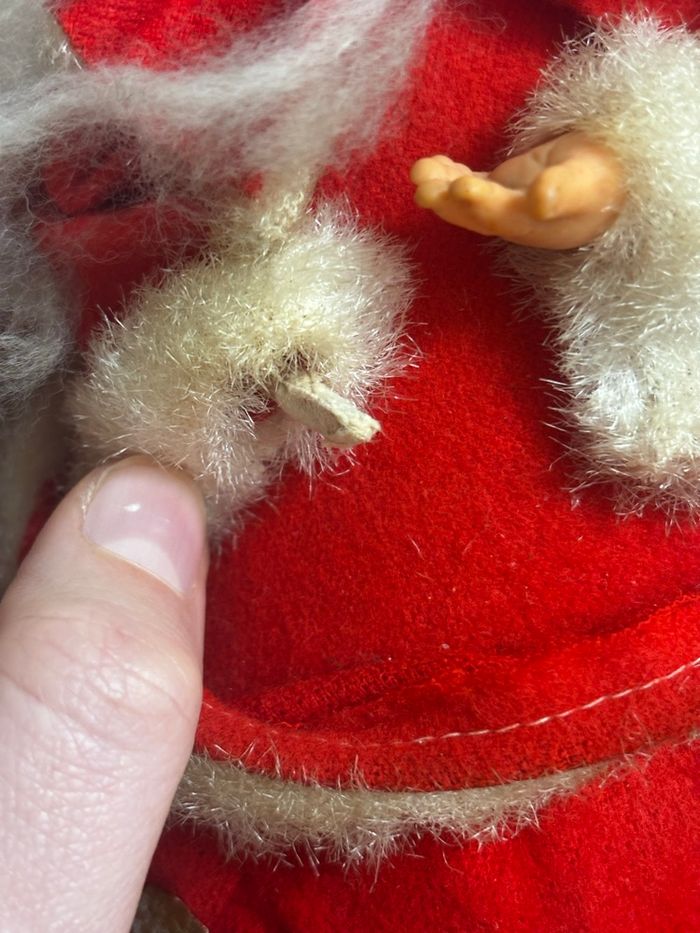 Rare boîte à musique vintage (années 60) Marque japonaise Sankyo Musique jouée : Jingle bells En état de fonctionnement : une vidéo sera prise avant envoi Représentant un père Noël Le tout est en état satisfaisant avec traces évidentes du temps: visage avec quelques traces, une main manquante, feutre des vêtements pouvant presenter des défauts: voir photo, vendu en l’état, objet ancien Hauteur 25 cm Largeur environ 15 cm
