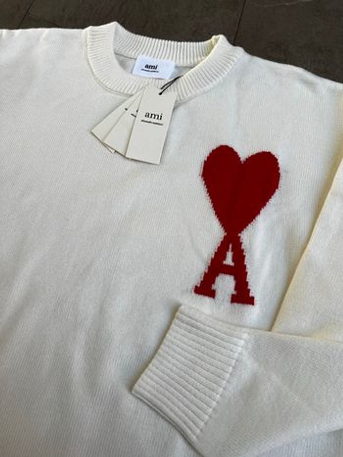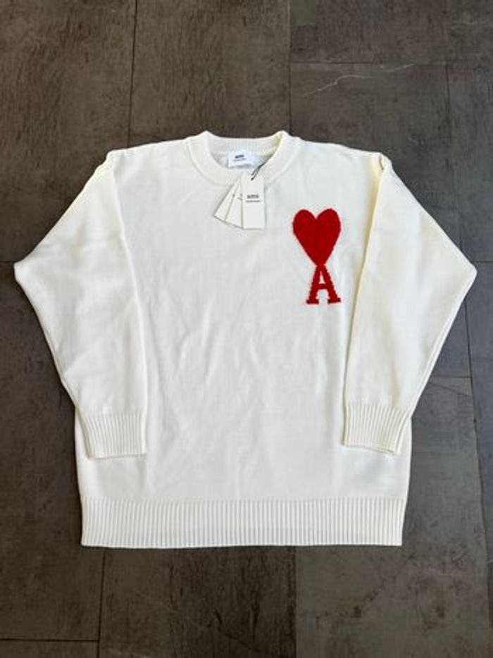 Magnifique pull Ami Paris blanc avec Cœur rouge Taille M N’hésitez pas à me contacter pour plus d’infos 😊