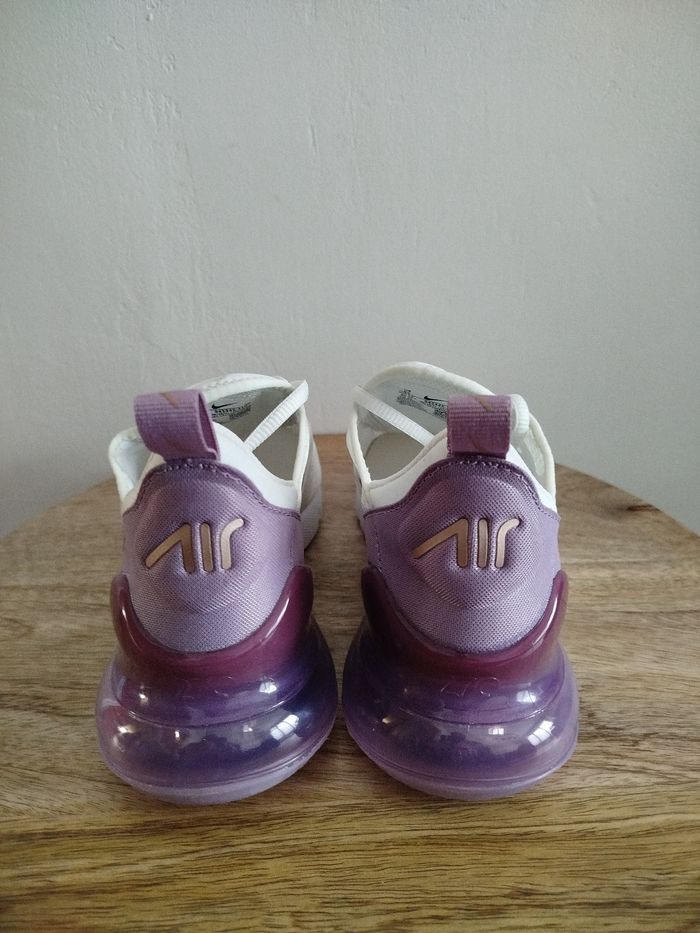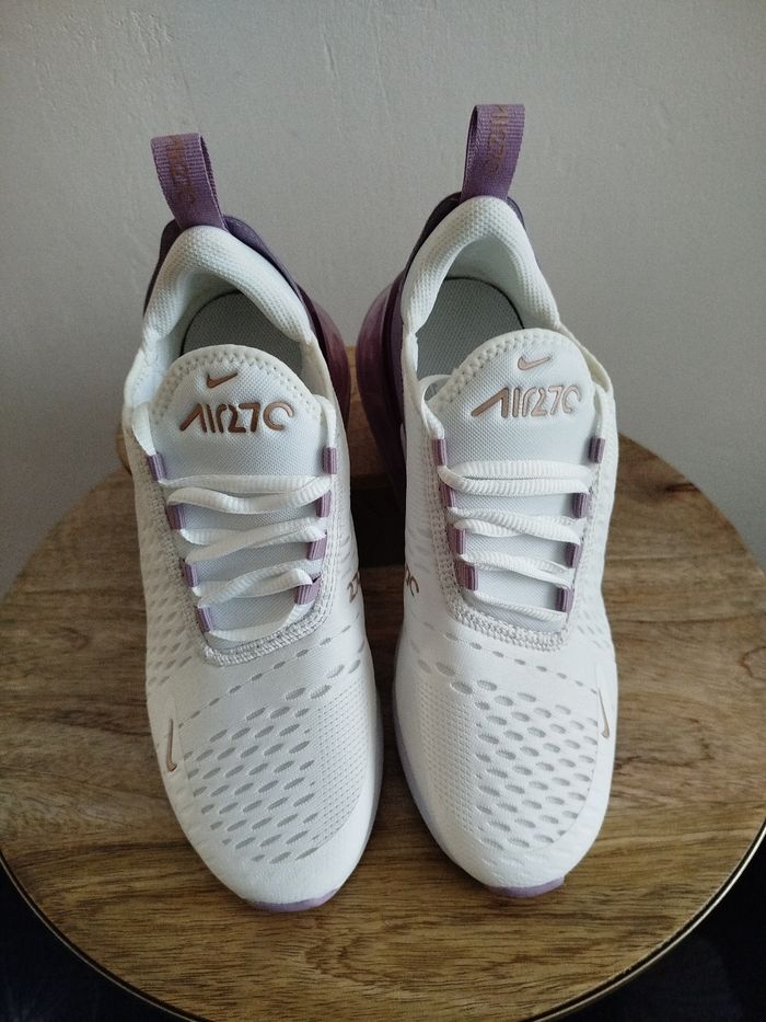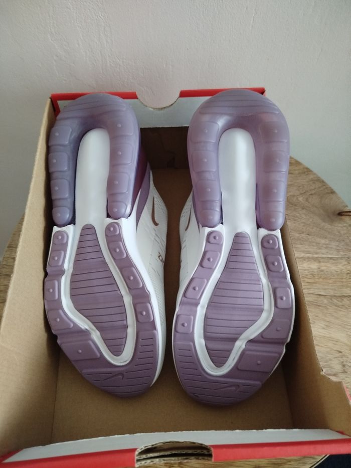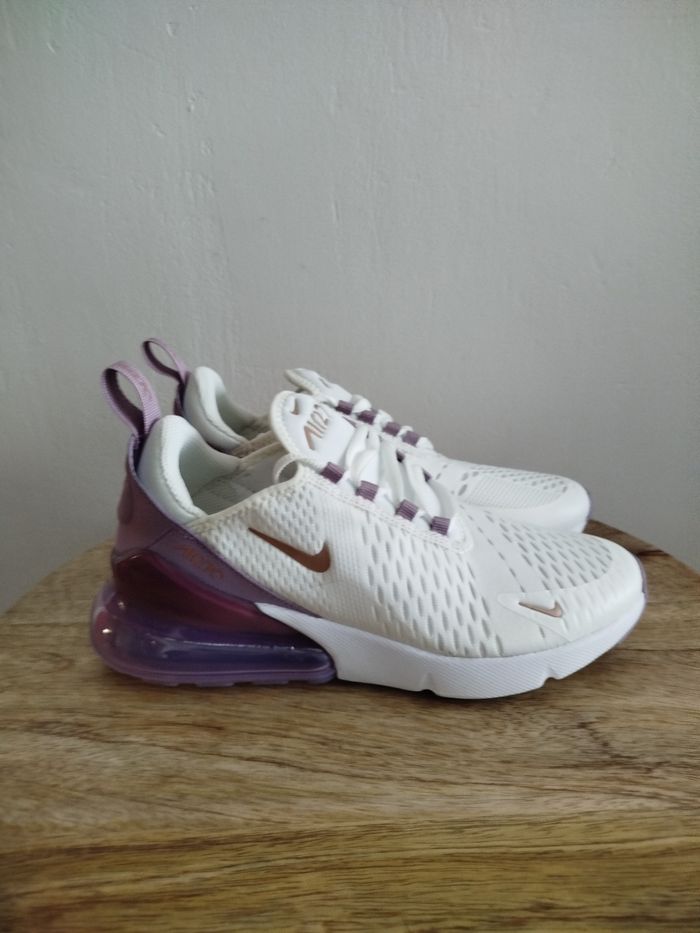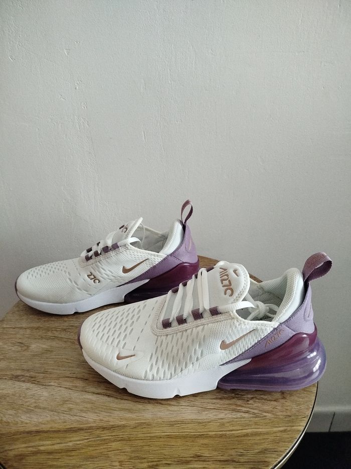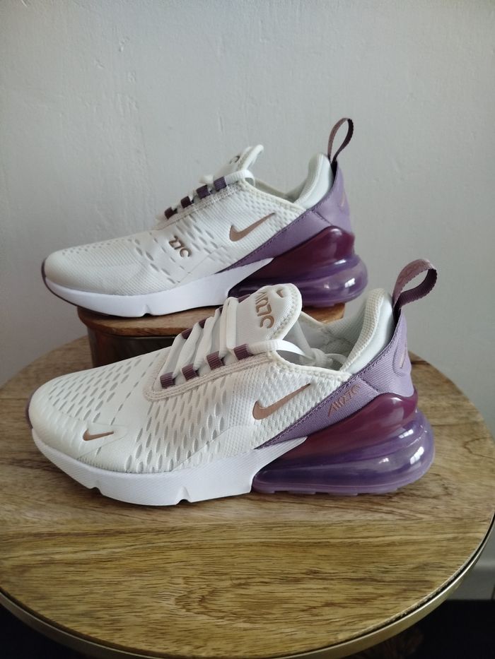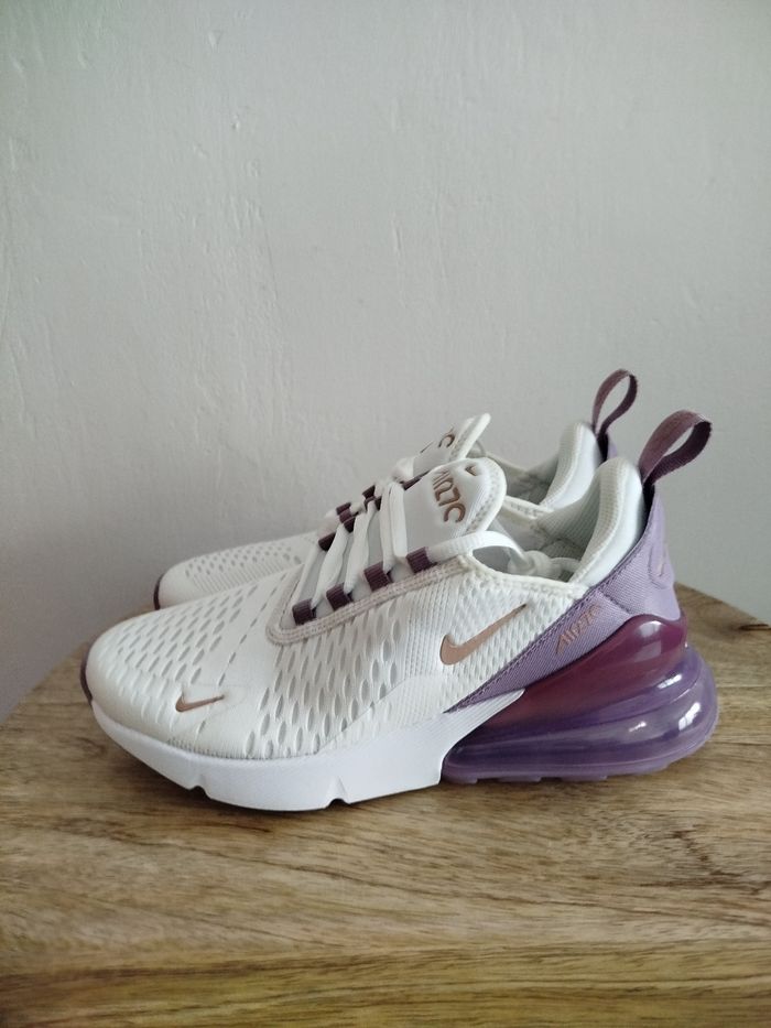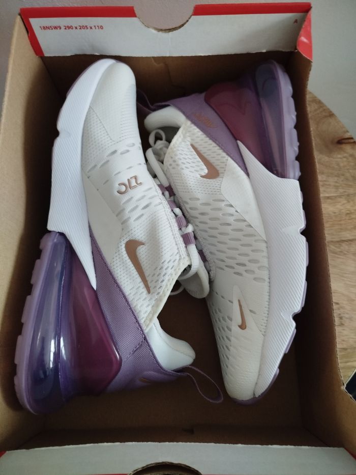 Je vends cette paire de baskets Nike - Univers : Femme - Marque : Nike - Modèle : Air Max 270 - Pointure : 38,5 - Couleur : Blanc Violet - Fermeture : Lacets - État Neuf Boîte sans couvercle N'hésitez pas à me contacter pour plus d'informations ou de photos.