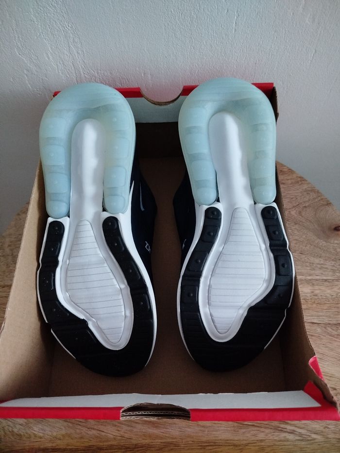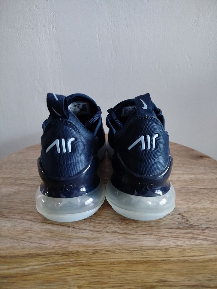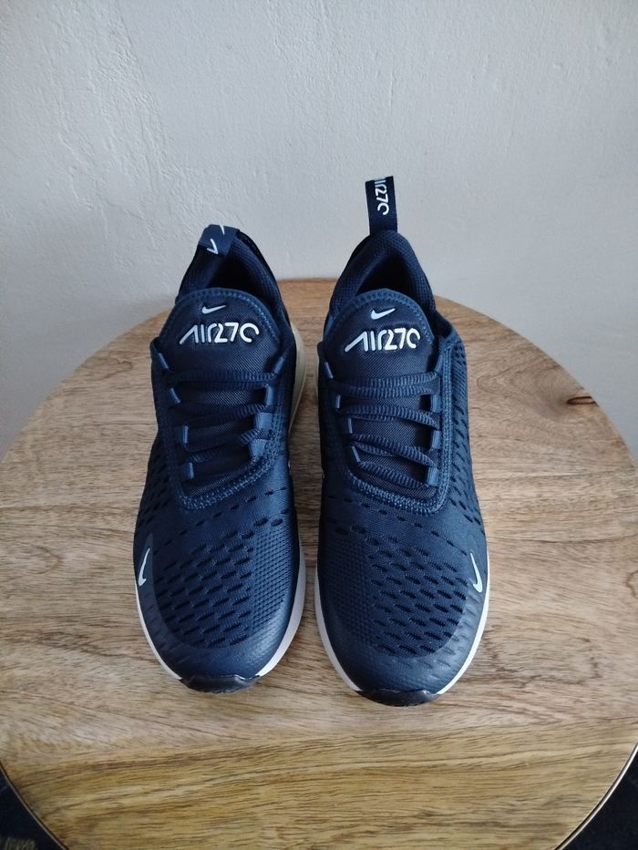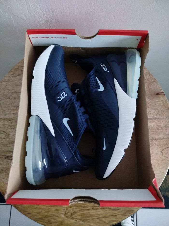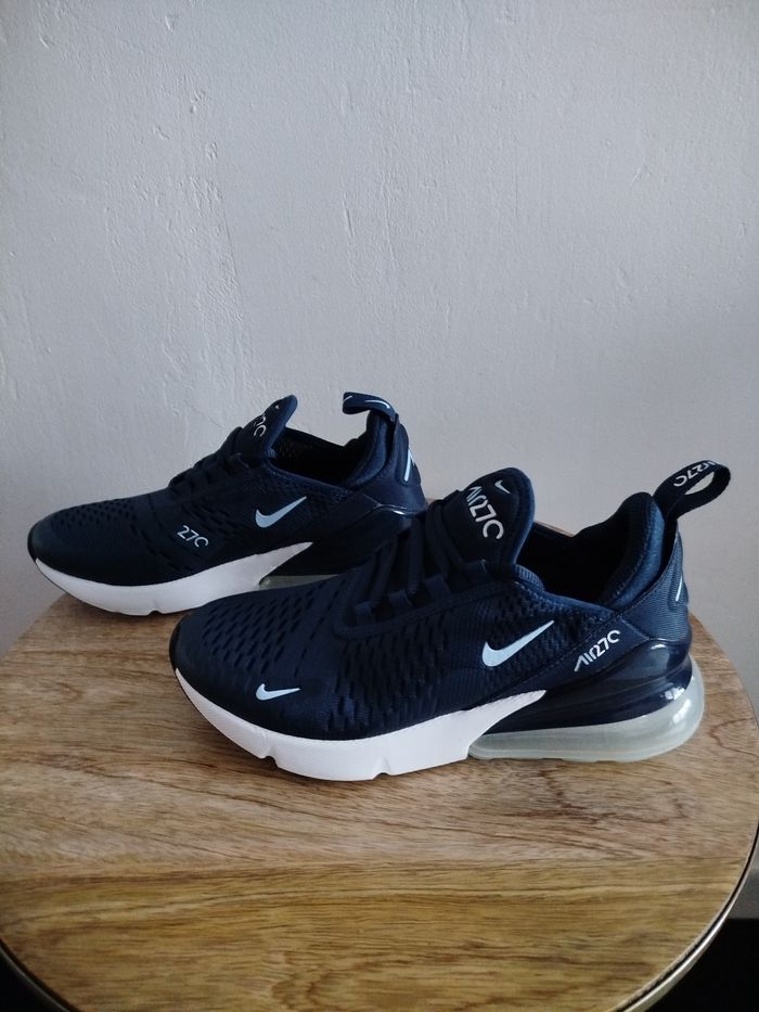 Je vends cette paire de baskets Nike - Univers : Homme - Marque : Nike - Modèle : Air Max 270 - Pointure : 39 - Couleur : Bleu Marine - Fermeture : Lacets - État Neuf Boîte sans couvercle N'hésitez pas à me contacter pour plus d'informations ou de photos.