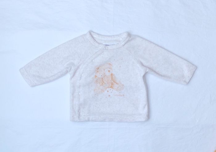 -haut écru moucheté beige et gris motifs oursons et étoiles,