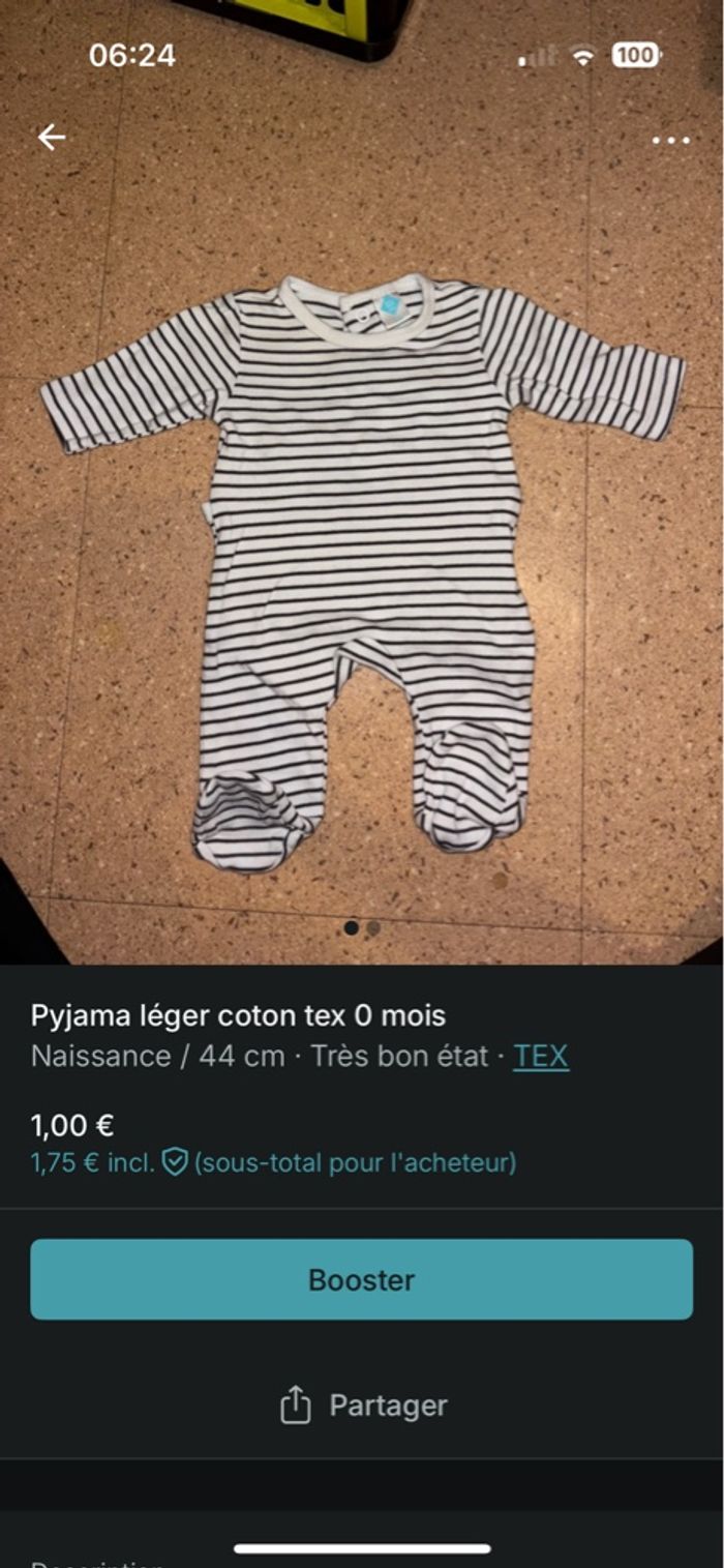 Pyjama coton léger 0 mois