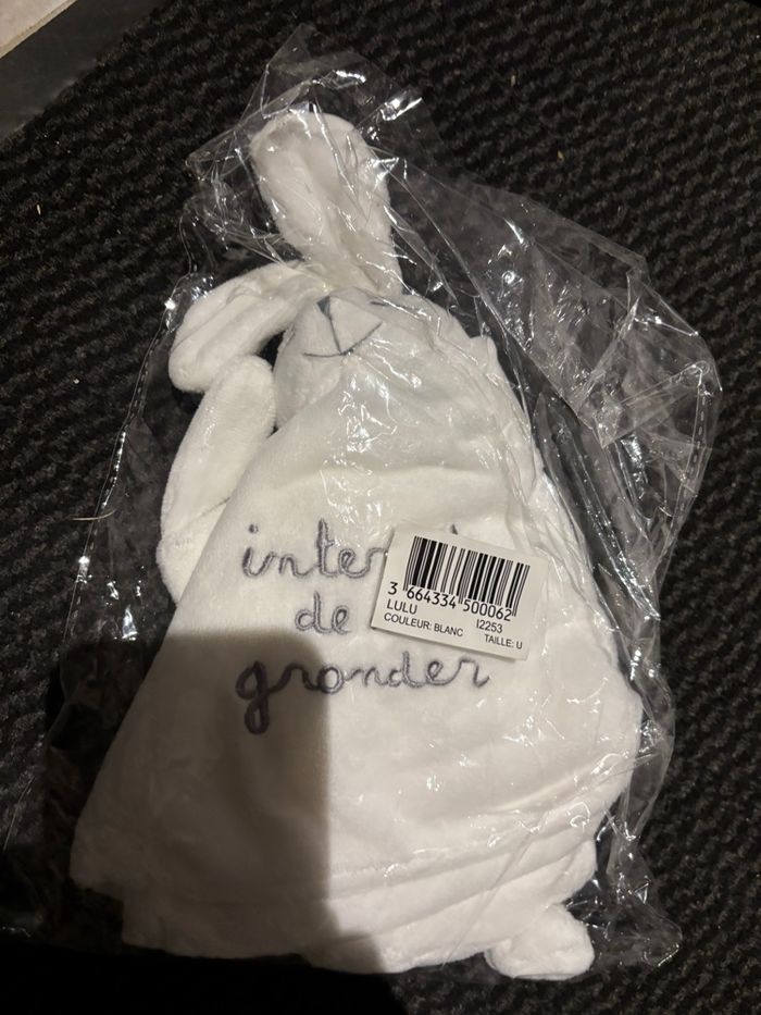 Bonjour Doudou lapin blanc Interdit de me gronder Neuf Envoi rapide