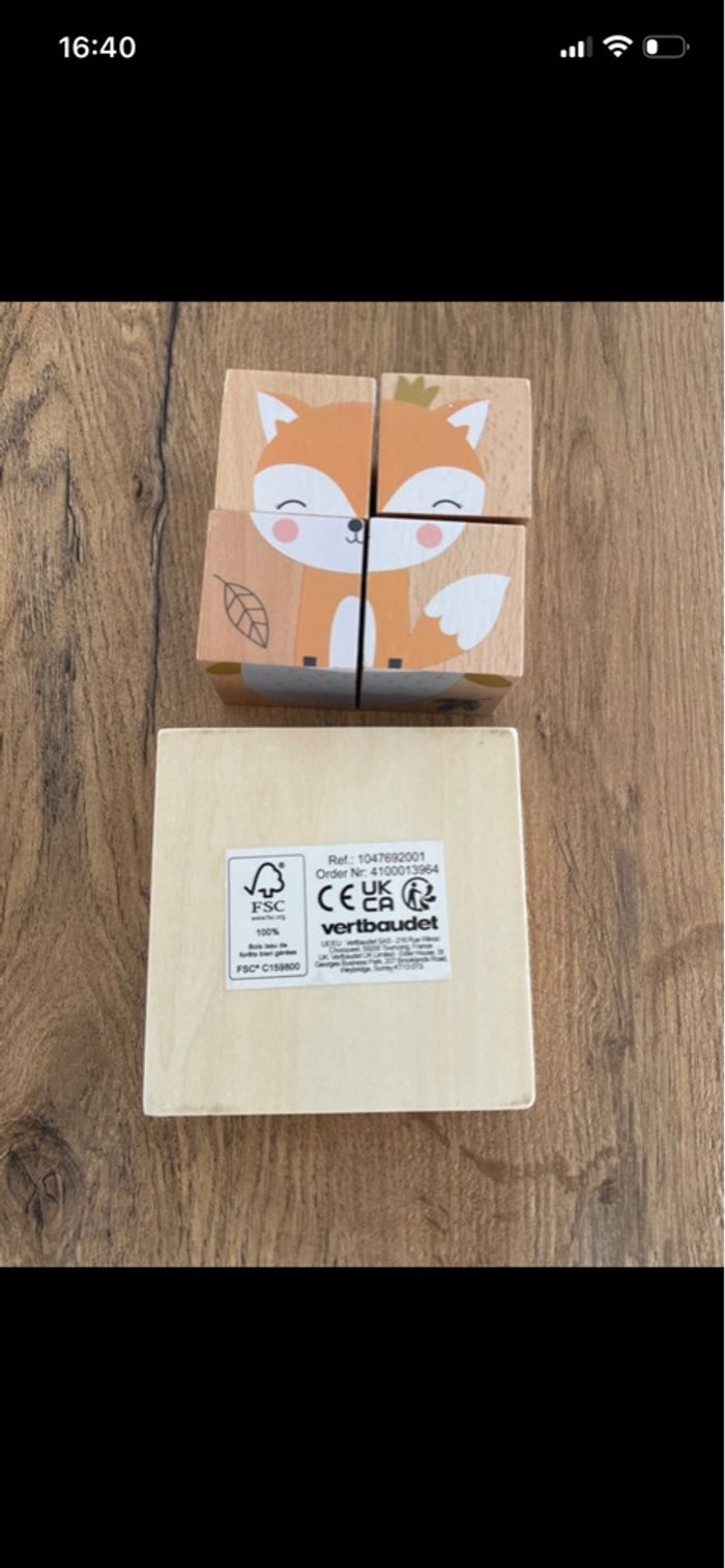 Puzzle cube des animaux en bois Vertbaudet