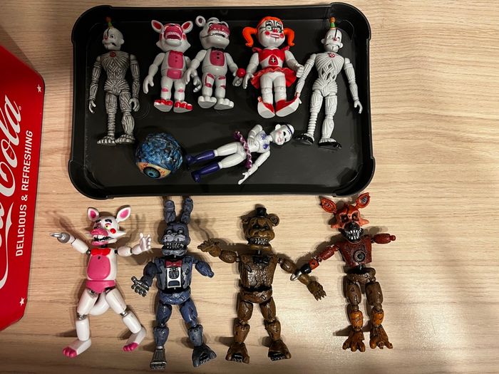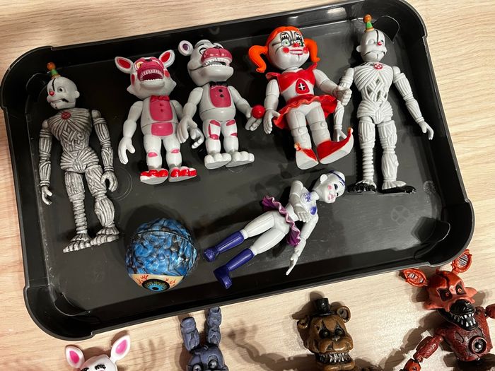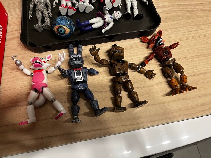 Lot de figurines Five Nights at Freddy’s (FNAF). ✔️ Figurines d’occasion ✔️ Vendues sans boîte ni nom visible ✔️ État correct, traces normales d’utilisation et d’usures (voir photos) ✔️ Articulées, idéales pour collection ou pour jouer Le lot comprend plusieurs personnages FNAF (voir photos pour le détail exact). 📦 Vente en lot uniquement ❌ Pas de boîte d’origine 📸 Les photos font partie de la description 45€ négociable