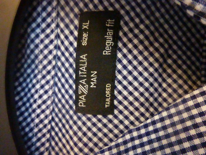 Chemise Piazza Italia à petits carreaux manches longues bleu et blanc