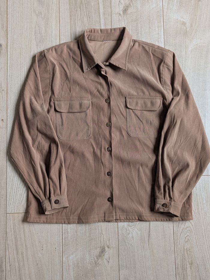 Chemise marron effet daim (suédine), douce au toucher et agréable à porter.
