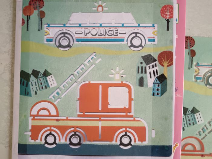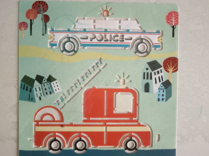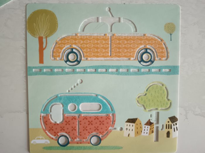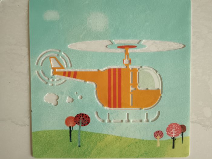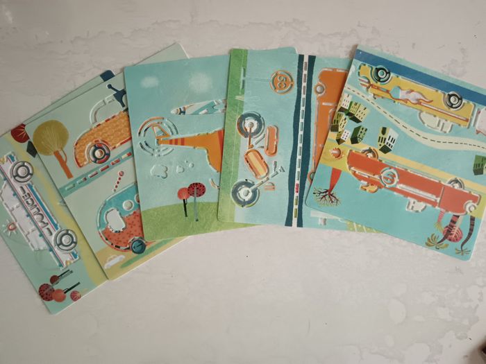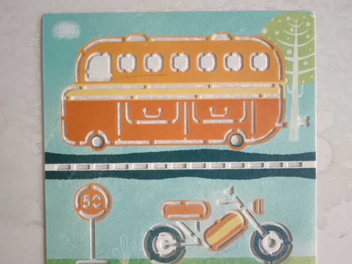 Lot de 5 pochoirs en plastique moyen de transport. Nettoyable à l'eau. Marque Djeco. Bon état. La pochette n'est pas celle d'origine.