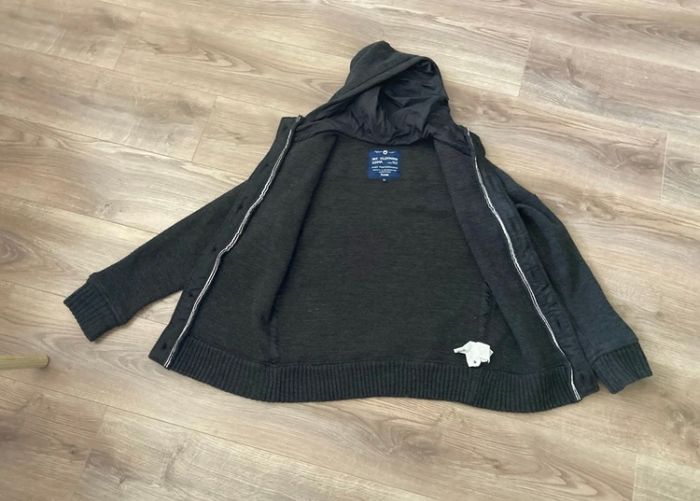 Jolie veste chaude à capuche de la marque Jules. Couleur gris foncé. Matière acrylique et polyamide. Taille M. Très bon état même excellent 👌 Envoi rapide et soigné 🌺 Maison propre, non fumeur, sans animaux. N’hésitez pas à faire un lot afin d’optimiser vos frais d’envoi 😉