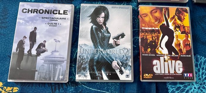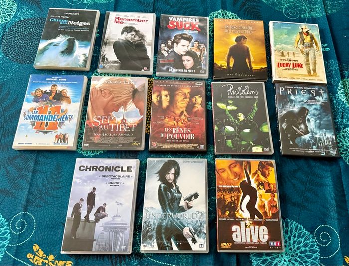 1€ pièce Prix si achat de plusieurs DVD Dispos: - Chiens des Neiges - Remember Me - Vampire Sucks - Un Long Dimanche de Fiançailles (édition collector) - Lucky Luke - Les 11 Commandements - Sept ans au Tibet - Les Rênes du Pouvoir - Phil Collins (concert: finally… the first farewell tour) - Priest (édition non censurée) - Chronicle - Underworld 2 - Alive