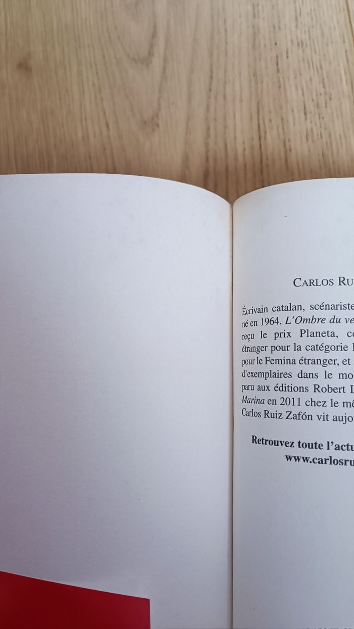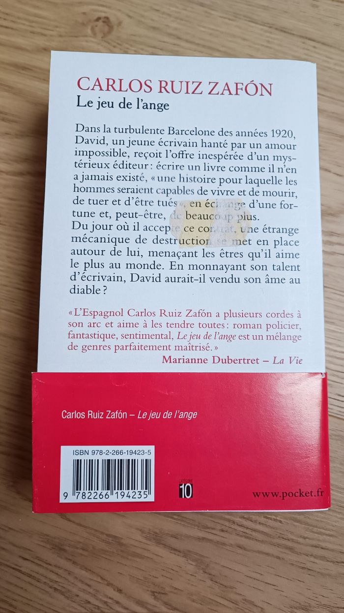 Le jeu de l'ange de Carlos Ruis Zafon Lu une seule fois avec soin, pas de pliure, d'écritures ou de déchirures La tranche du haut et les premières pages sont un peu jaunies mais le reste est nickel Maison non fumeur