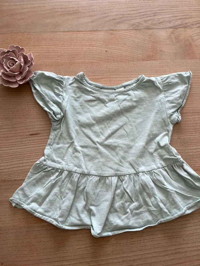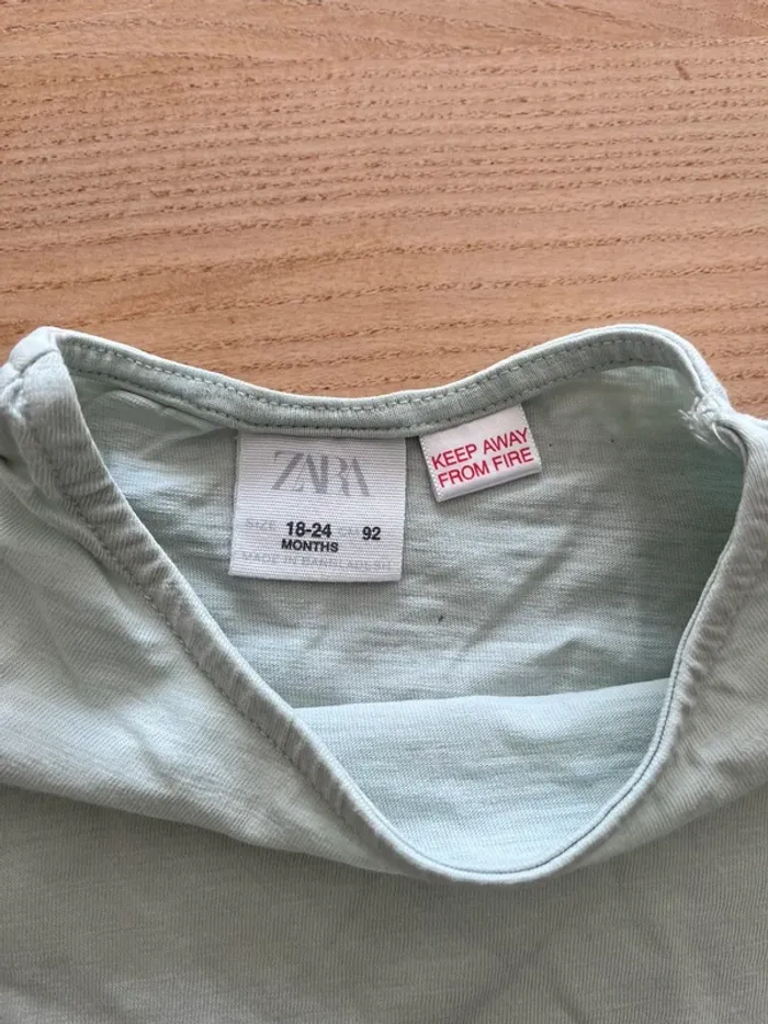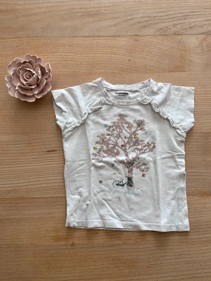 Lot avec 2 tee-shirts Vertbaudet blanc avec arbre 3 ans 94 cm bon état Zara bleu cyan 92cm mais petites taches en bas peu visible