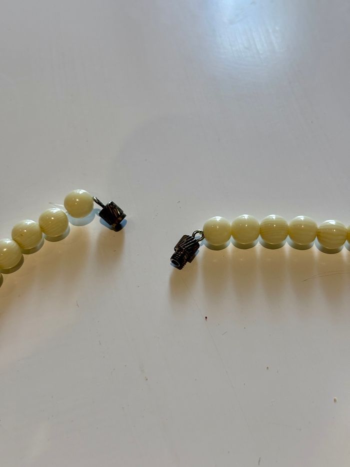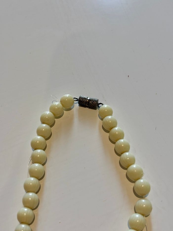 Apporte une touche d’élégance et de douceur à ta tenue avec ce magnifique collier en perles blanches au style vintage.