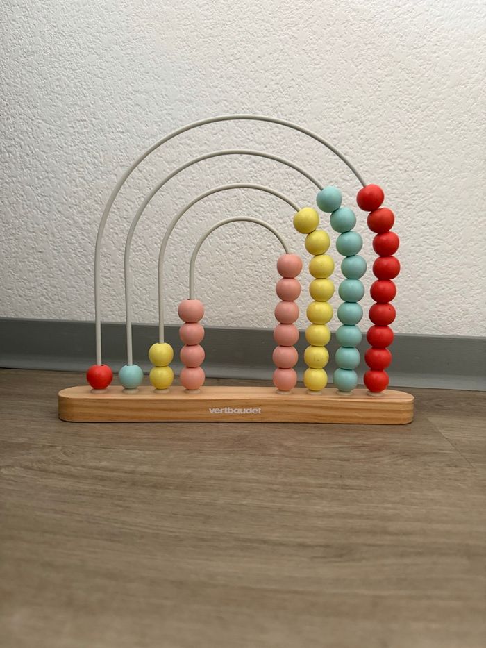 Grand boulier en bois de la marque vertbaudet. Couleur arc en ciel pastel. En parfait état