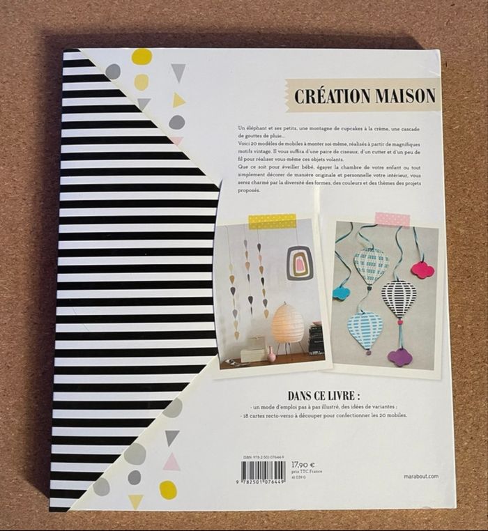 A vendre livre Mobiles pour enfants Marabout. 18 cartes resto-verso à découper pour confectionner les 20 mobiles. Il a été regardé, il y a des marques d’utilisation surtout au niveau de la couverture voir les photos. J’ai d’autres livres à vendre