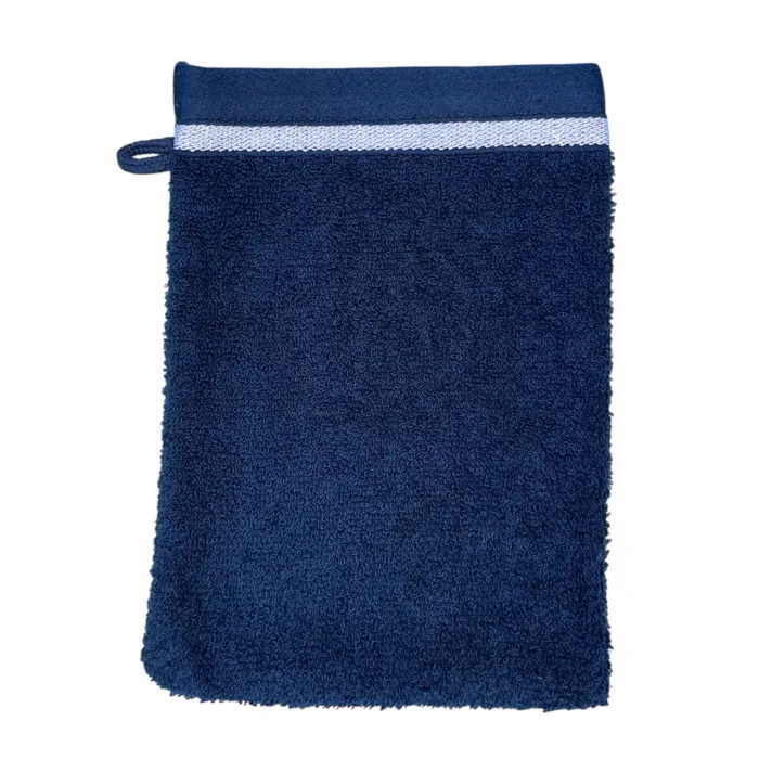 Gant de toilette – Bleu foncé et blanc