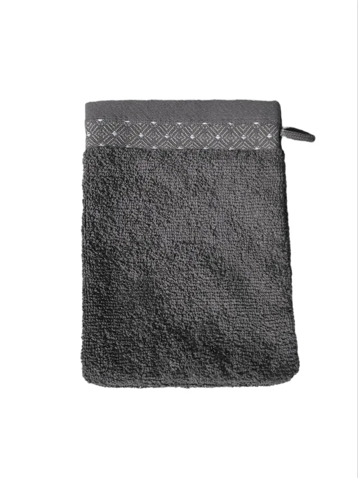 Ce gant de toilette gris à motif allie élégance et praticité. Entièrement confectionné en coton, il offre une absorption efficace et un toucher doux pour la peau. Son design soigné et sa taille pratique en font un accessoire idéal pour un usage quotidien.