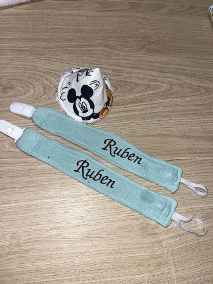 Attache tétine fait main tissu clips plastique Plusieurs tissu disponible Gaze de coton Imprimé Tissu mincky tout doux Prénom brodé Possible de rajouté l’attache mam plus 1 euro