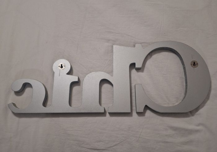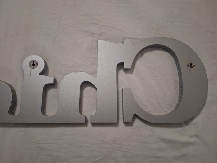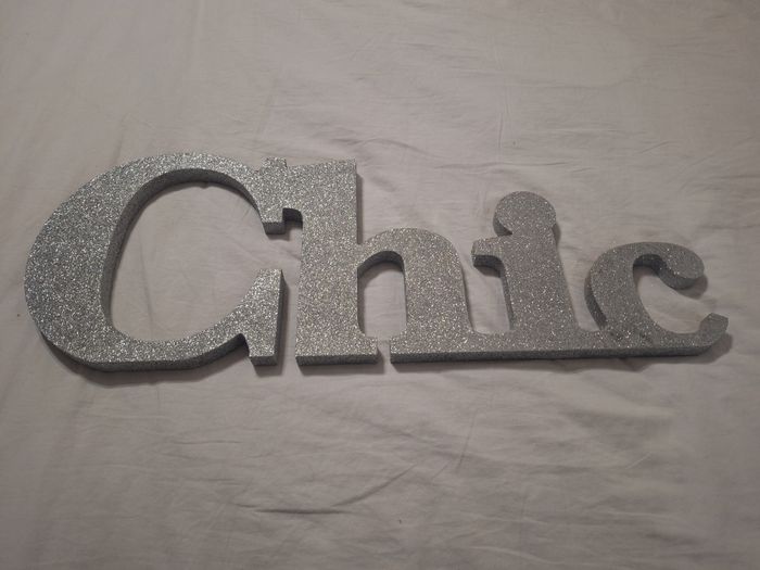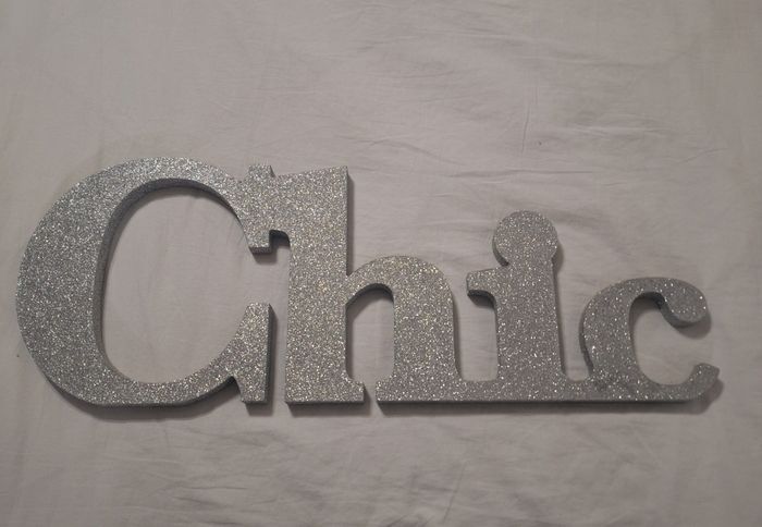 En très bon état. Profondeur 2 cm Hauteur des plus grandes lettres 22.5 cm Longueur 60 cm. Pailletté argent.