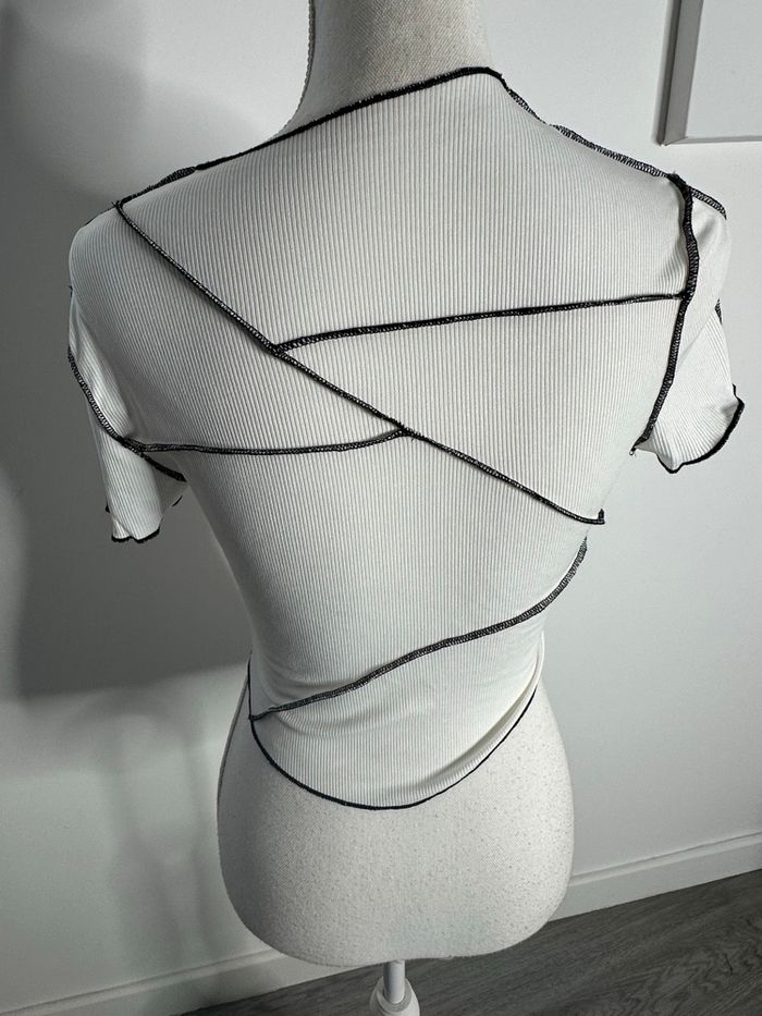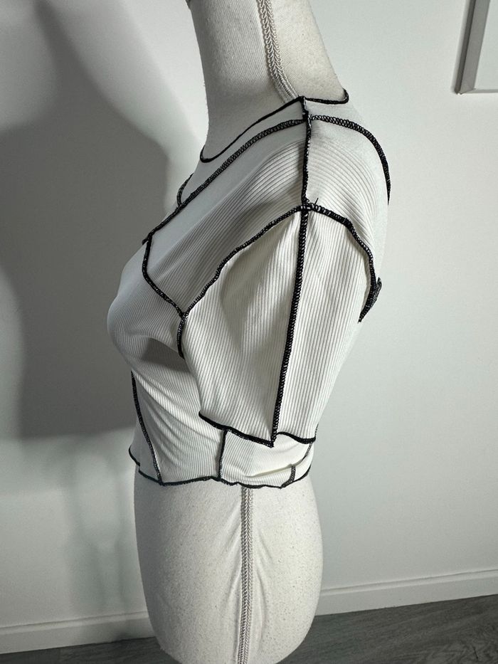 T-shirt crop top blanc et noir coutures apparentes Y2K T36 S - photo numéro 1