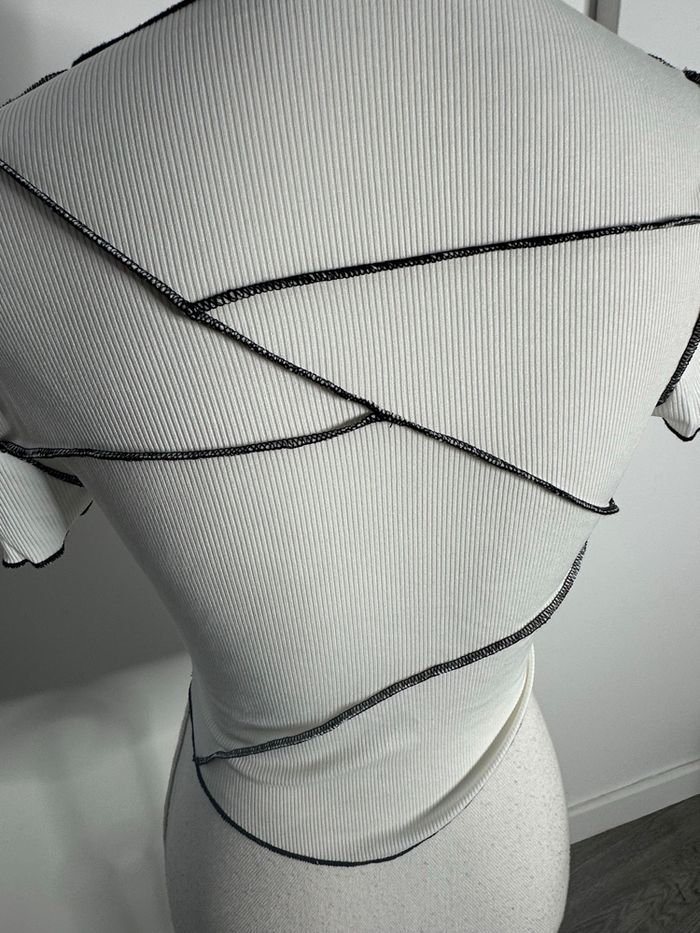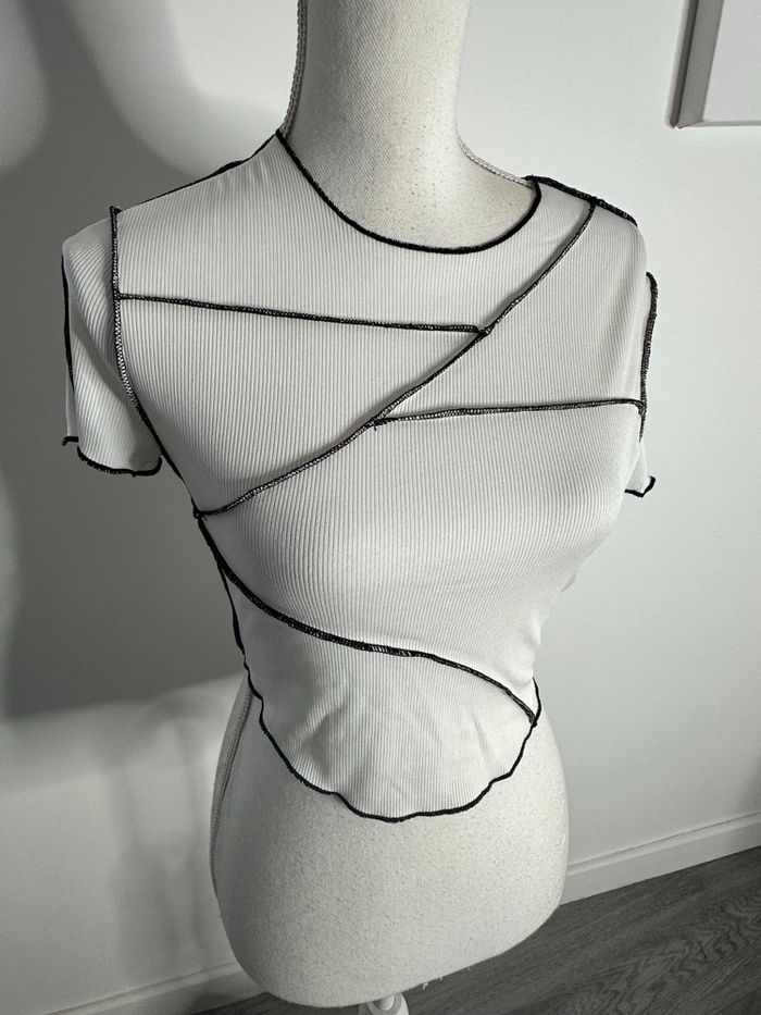 T-shirt crop top blanc et noir coutures apparentes Y2K T36 S - photo numéro 2