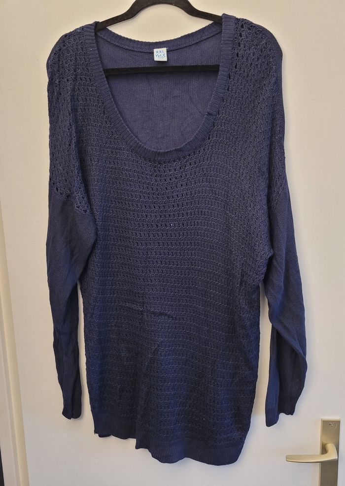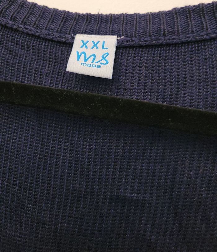 Je vends ce pull marine de la taille XXL qui c'est détendu au fil du temps.