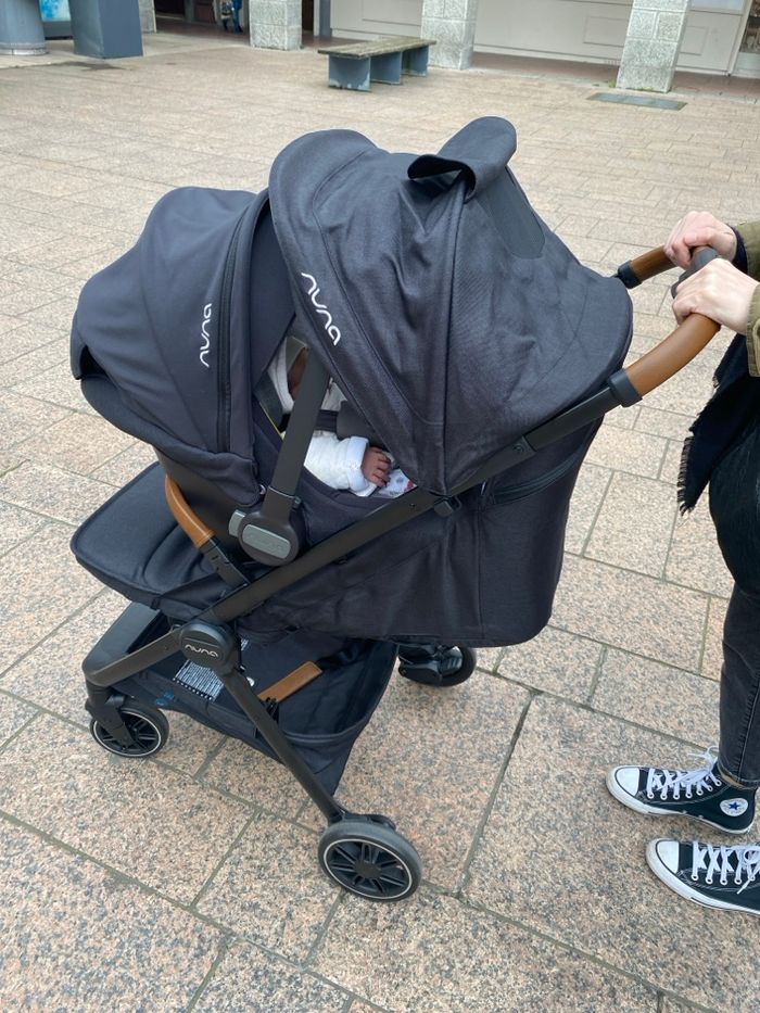 Poussette Nuna trvl Ultra légère Coloris caviar Excellent état Fourni avec son habillage pluie Possibilité de clipser la coque Pippa de la marque sans adaptateur ( dernière photo ) Envoi dans son carton d’origine